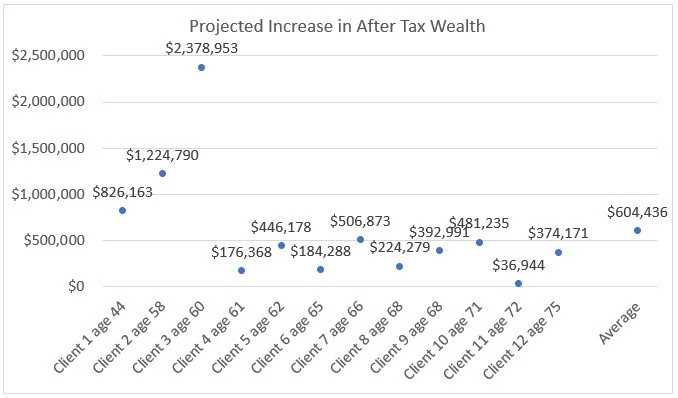 Each year, we do long-range tax planning with our clients. The results below are from the 2024 tax planning sessions.